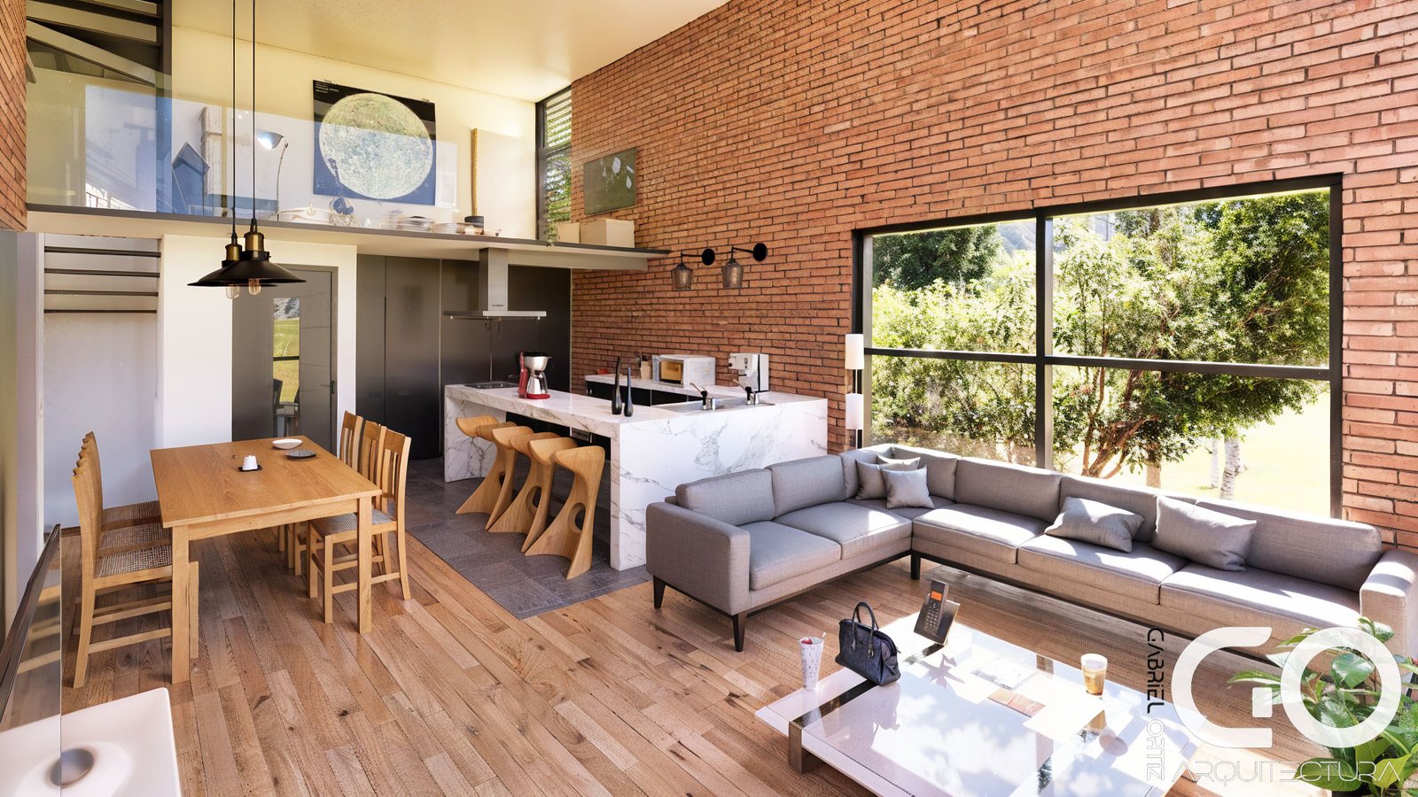 • Piel de Ladrillo: El exterior está revestido en ladrillo arquitectónico, integrando la casa rítmicamente en el paisaje de Bogotá. Al interior, este material queda expuesto, aportando una textura cálida y honesta que unifica los cuatro niveles.