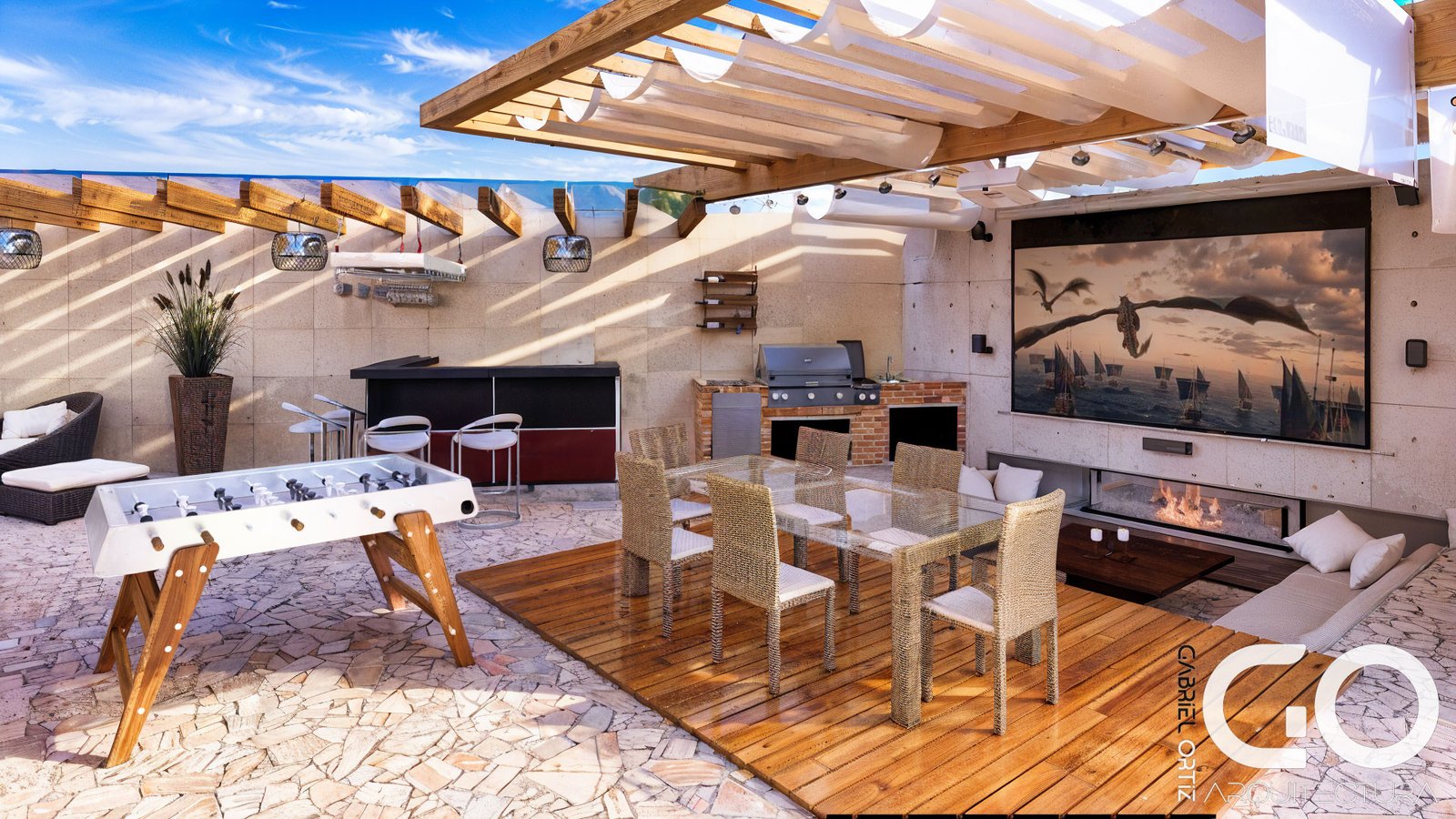• La conquista de la quinta fachada: El recorrido vertical, guiado por una escalera lateral de diseño eficiente, culmina en una terraza-lounge privada. Este último nivel funciona como un mirador urbano y la terraza BBQ es un espacio único que se transforma en un habitad multipropósito, transformandolo en un oasis de relajación que compensa la huella construida y ofrece una conexión privilegiada con el entorno.