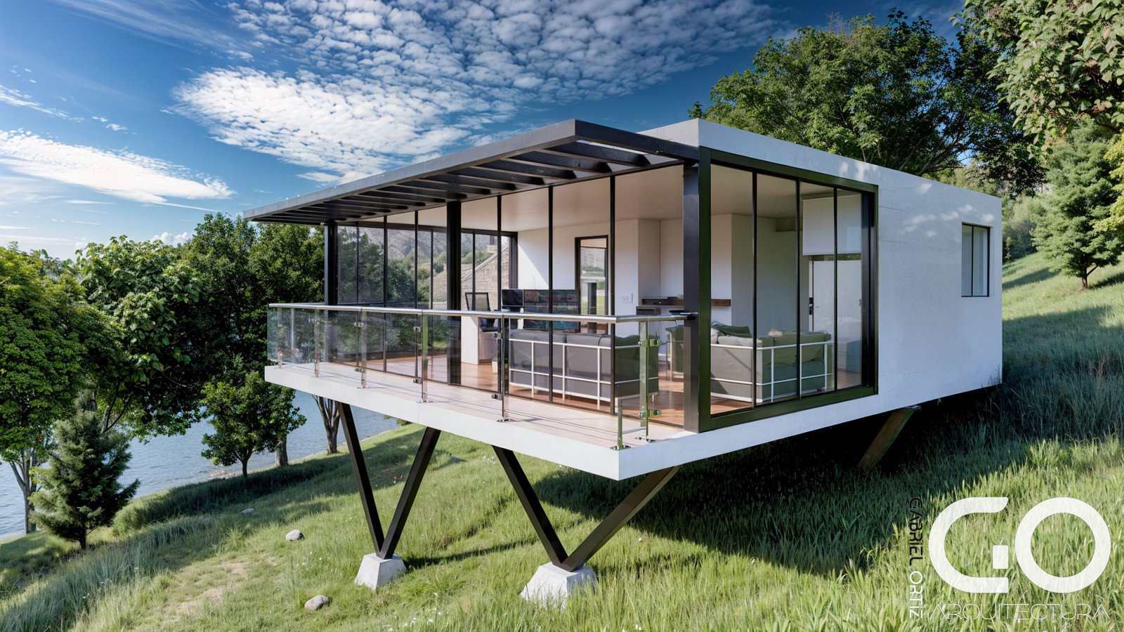 Este proyecto nace de un diálogo respetuoso con el relieve. En lugar de intervenir drásticamente el terreno, la casa se proyecta sobre columnas en “V”, una solución de ingeniería que permite que la estructura “vuele” sobre la inclinación natural. El resultado es una estética industrial-elegante que garantiza estabilidad y ofrece una vista ininterrumpida sobre el valle de Fusagasugá.