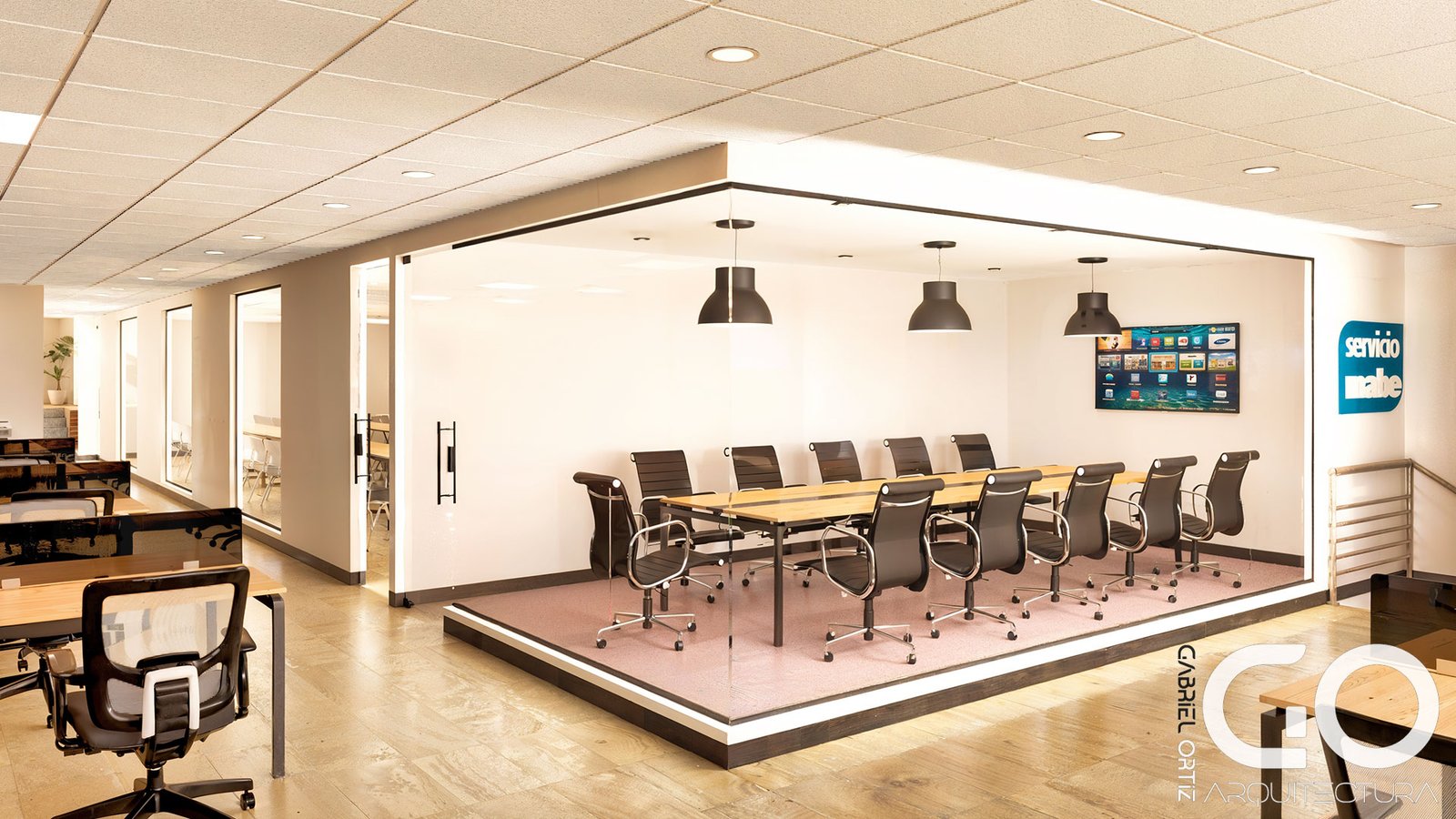 Bajo un enfoque de interiorismo estratégico, este proyecto para Mabe se enfoca en el concepto de centro de servicios principal. La propuesta se centra en una reingeniería total de los espacios de trabajo y capacitación, alineando la infraestructura con los valores de sofisticación y tecnología de la marca. El resultado es un ecosistema que equilibra el rigor profesional con el confort humano, eliminando el caos operativo para potenciar el bienestar y la eficiencia del capital humano.