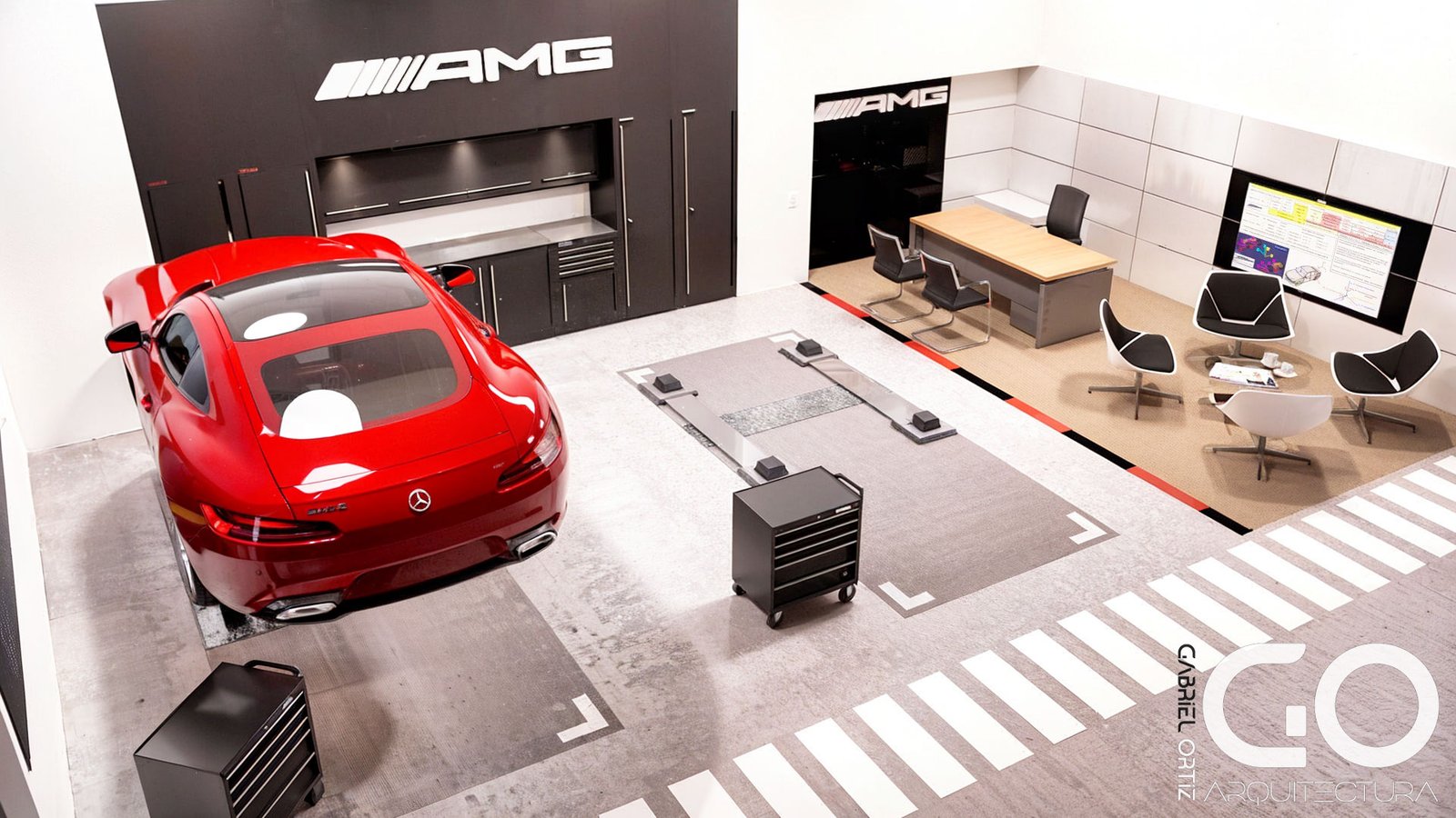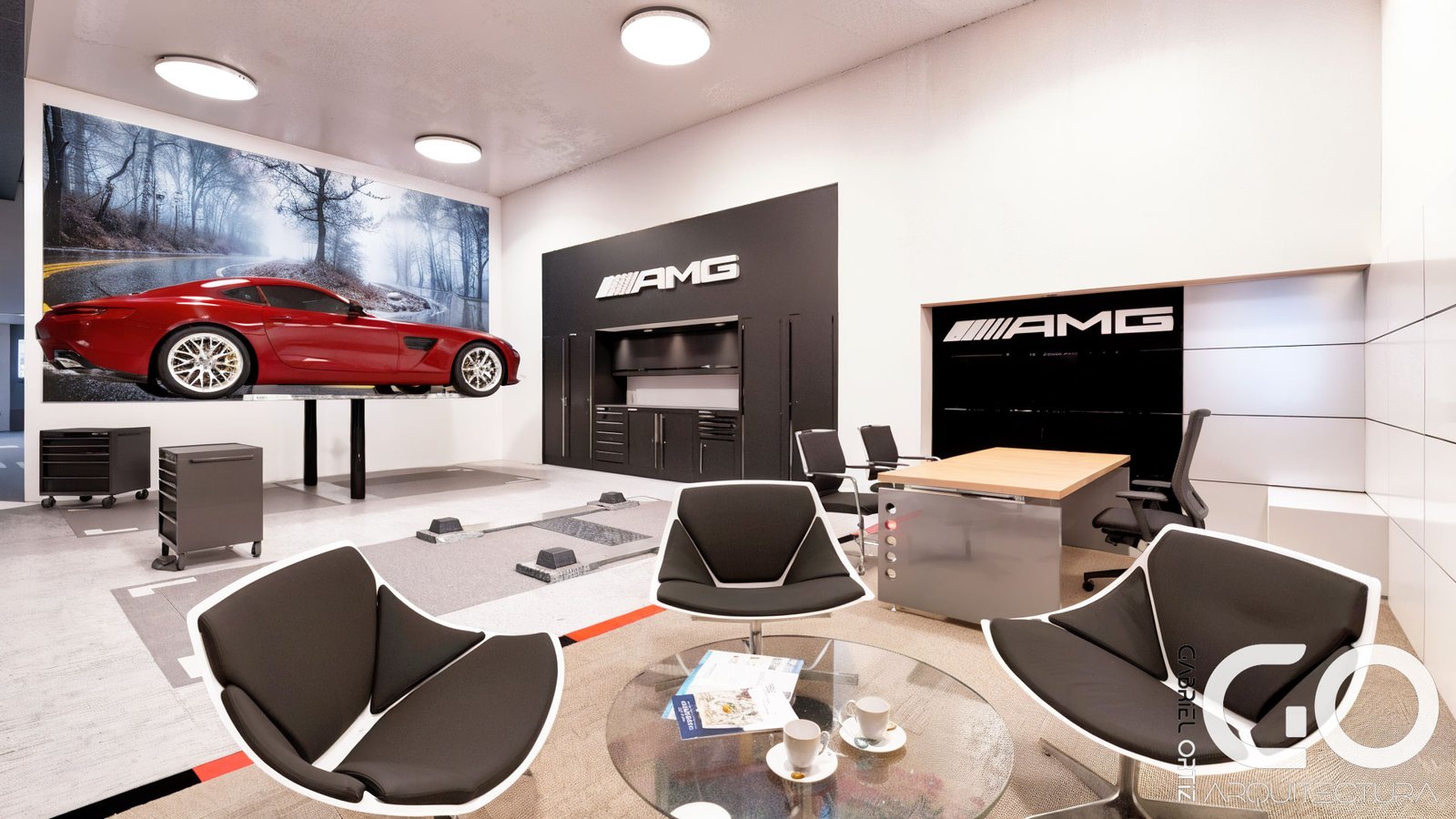 • Transparencia y confianza operativa: Rompemos la barrera del taller tradicional mediante un diseño de visibilidad abierta. El propietario puede observar, desde un lounge de hospitalidad premium, el rigor técnico con el que se interviene su vehículo. Esta transparencia arquitectónica transforma el servicio en una experiencia de confianza y educación sobre la ingeniería AMG.