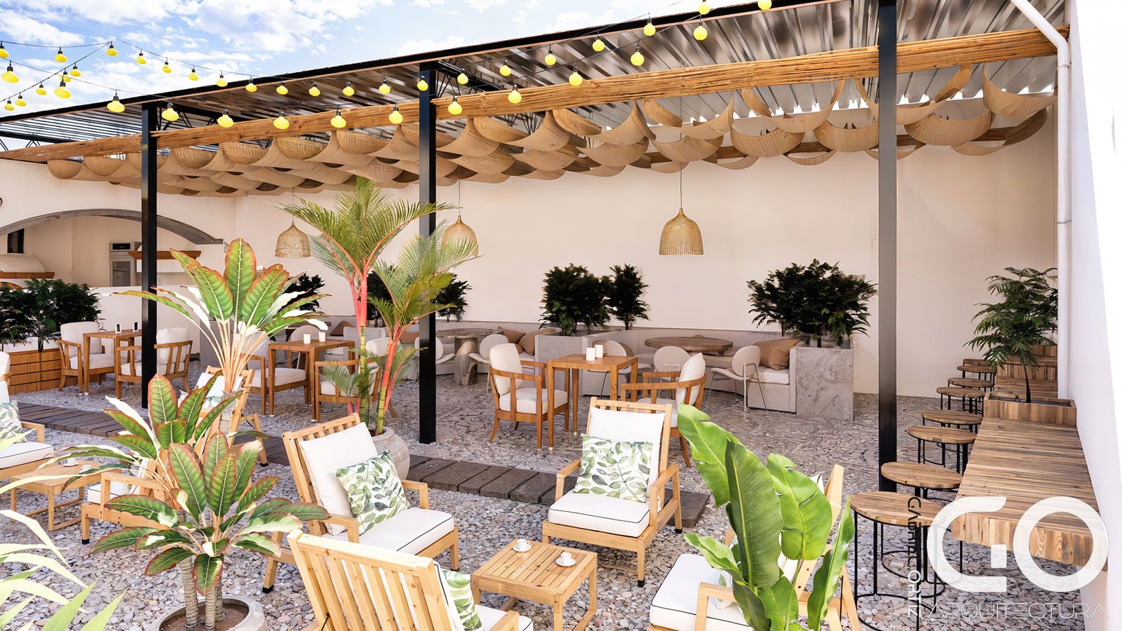Maestría artesanal e identidad local: La intervención se fundamenta en un diálogo con el saber de la región. El mobiliario creado por artesanos de Sincelejo en madera tratada y tejidos de fique, narra la historia del territorio. Esta estética se traslada a la terraza posterior, donde pérgolas de bambú y telas flotantes generan sombras dinámicas y una atmósfera de sofisticación rústica bajo el cielo del Caribe.